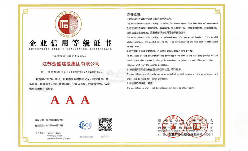 • 2007年江蘇省質量信得過安全穩定施工企業